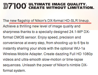 A dpreview forum member contacted Nikon Europe and asked them about the new D7100 being described as the “new flagship of Nikon’s DX-format HD-SLR lineup” on Nikon USA website (the D7100 is described as “enthusiast-level DX format camera” in Europe). This is Nikon’s answer: