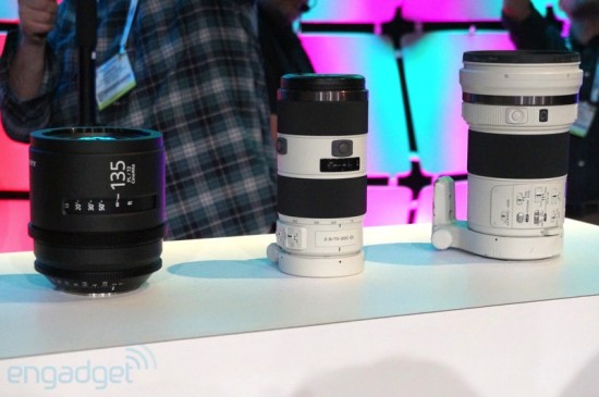 Sony showed two prototype 4K cameras and also cinema prime lenses at the 2013 NAB Show. From the images below Sony cinema lenses are 20mm, 50mm and 135mm prime lenses.