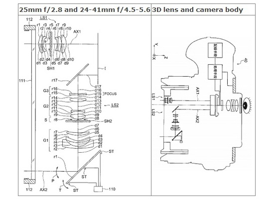 Olympus has filed a patent for 25mm f/2.8 and 24-41mm f/4.5-5.6 3D lens. The new patent describes a 3D lens for Micro Four Thirds cameras. This technology allows photographers to capture the same frame from different angles with creating a 3D photo.