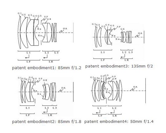 Patent includes Canon 85mm f/1.2, 85mm f/1.8, 135mm f/2 and 50mm f/1.4 lenses and the use of glass with anomalous dispersion.