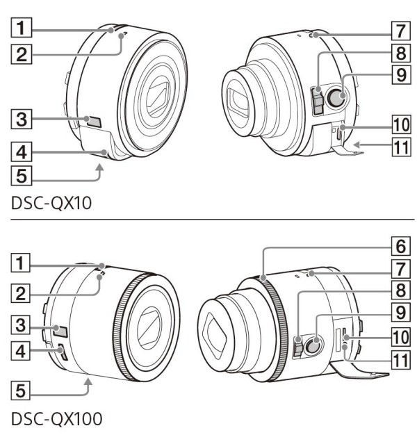 Here are manual images of upcoming Sony QX lens cameras DSC-QX10 and DSC-QX100.