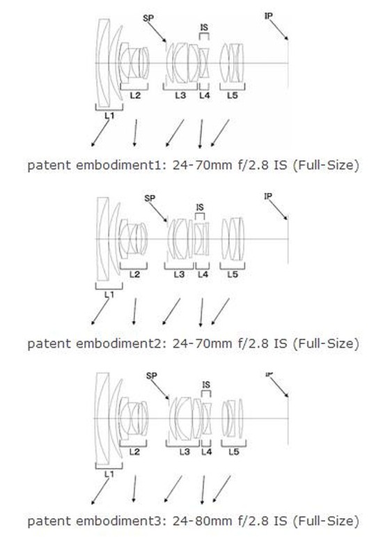 Canon filed a new patent for the EF 24-70mm f/2.8L IS USM lens. This is the image stabilized version of the Canon EF 24-70mm f/2.8L II USM standart zoom lens. The rumores has been surfaced last year for the patented EF 24-70mm f/2.8L IS USM lens.