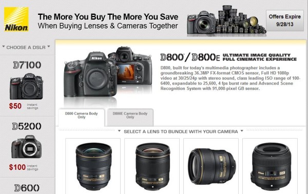 The rebates are stackable which means that you can buy multiple lenses with one body and still take advantage of the savings. If you get few of the high-end lenses, the camera will basically come for free (depending on the model). Nikon Instant Rebates and all these deals are available online through September 28, 2013.
