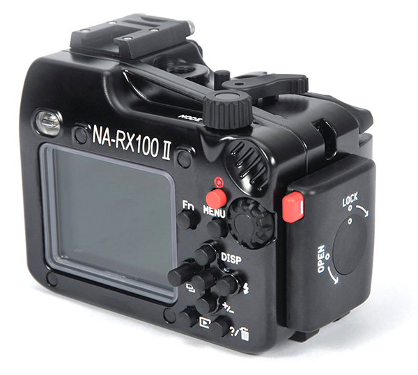 Sony RX100M II housing product, the NA-RX100II also features single rotating housing latch, rugged machined aluminum case, rear mounted o-ring, and a sculpted shutter release that give the user direct control over half press and full press of the camera shutter button.