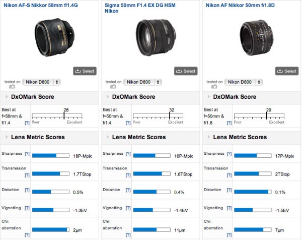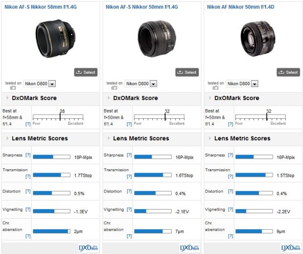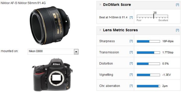 DxOMark published their test results for the Nikon AF-S NIKKOR 58mm f/1.4G lens which is currently priced for $1,699.95 at Amazon. AF-S NIKKOR 58mm f/1.4G lens scored 28 which is lower than the some cheap 50mm lenses. DxOMark tested this lens with the high-end Nikon D800 DSLR camera.