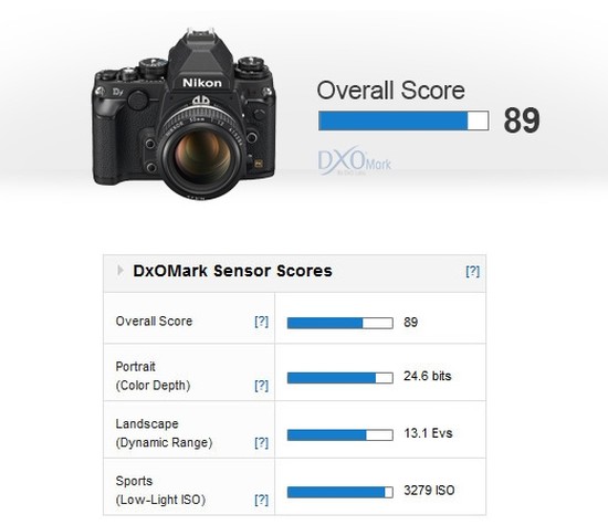 The Nikon Df achieves a DxOMark sensor score of 89 points and is ranked 11th overall. The retro-styled camera Nikon Df sits in 1st place in their low light scores with an ISO 3,279 rating, while D4 is 2965.