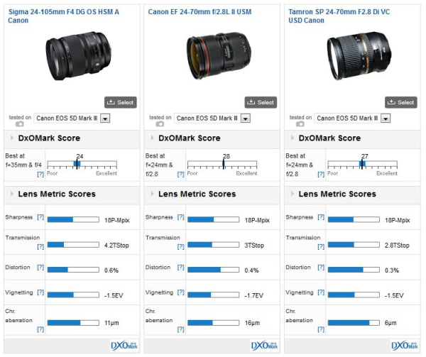 Sigma 24-105mm f/4 vs. Canon EF 24-70mm f/2.8L vs. Tamron SP 24-70mm f/2.8L.