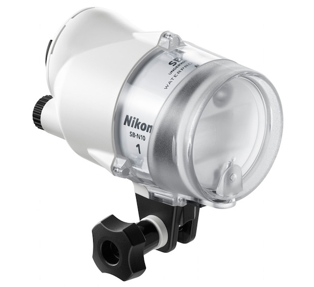 This speedlight can be attached directly to the AW1 or the Nikon WP-N3 waterproof case, which is compatible with the J4.