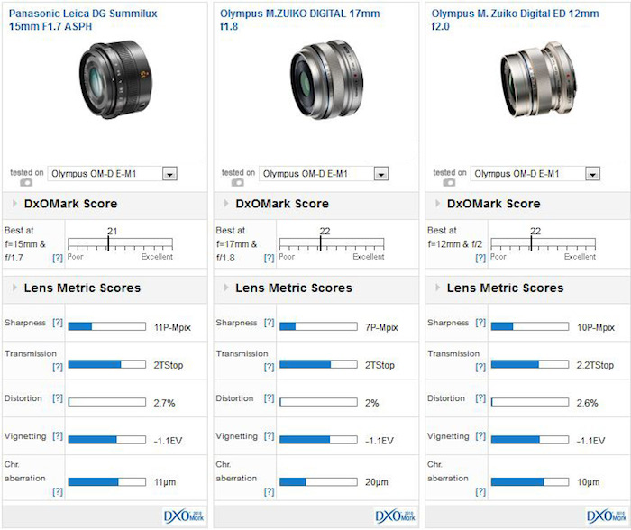 Comparison with Panasonic Leica DG Summilux 15mm f/1.7 vs. Olympus 17mm f/1.8 vs Olympus 12mm f/2