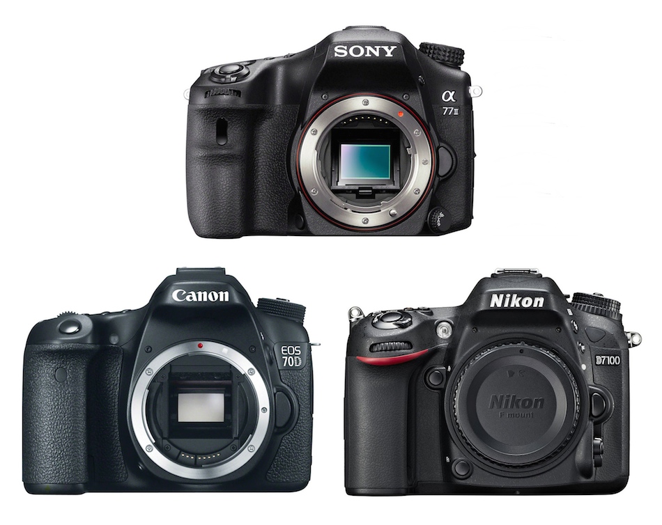 Here is a full specifications comparison for the newly announced Sony A77 II vs Canon EOS 70D vs Nikon D7100 APS-C format DSLR cameras.