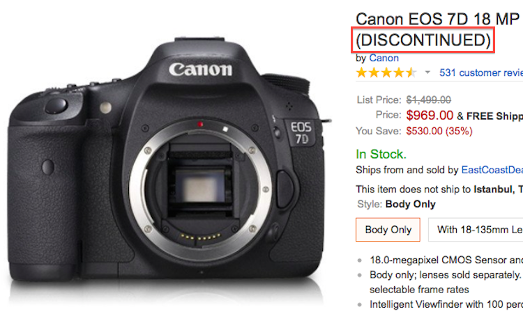 Canon EOS 7D Listed as Discontinued at Amazon