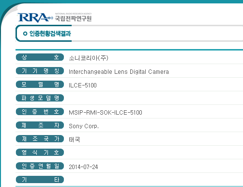 The Korea Radio Research Laboratory website was registered the Sony A5100 and Sony QX30 cameras.