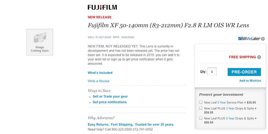 | Fujifilm XF 50-140mm f/2.8 R LM OIS WR Lens | $1599.95 | Amazon | Adorama |