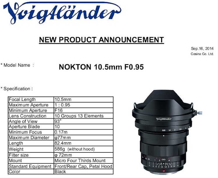Voigtlander Announces Nokton 10.5mm f/0.95 Micro Four Thirds Lens