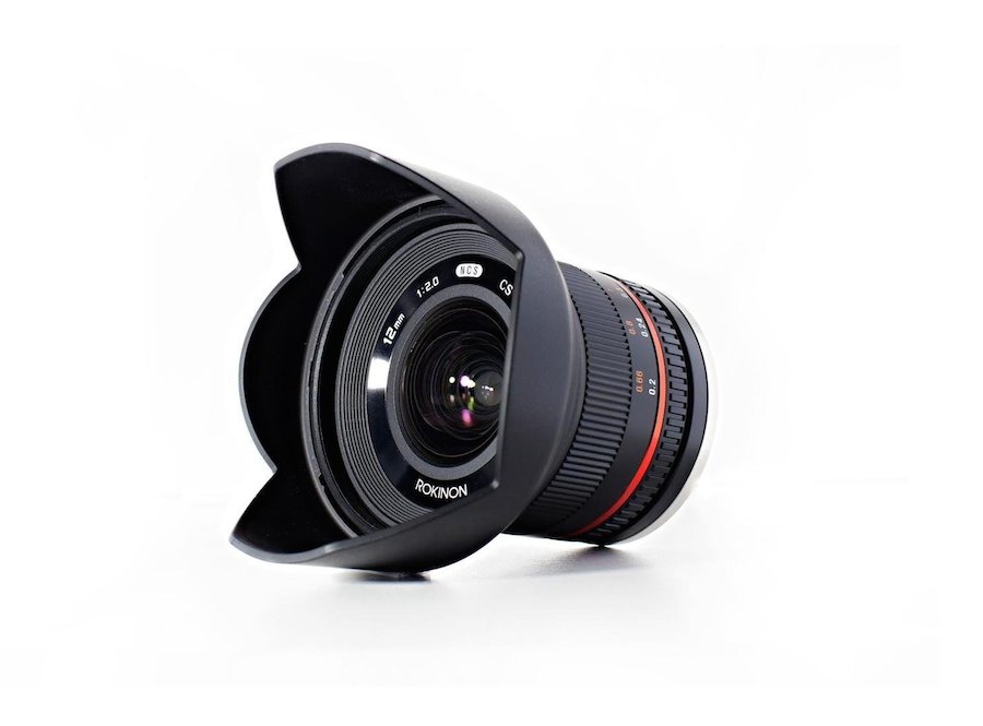 Rokinon 12mm f/2.0 NCS CS lens is a manual focus and aperture control wide-angle prime lens and offers an 18mm equivalent angle of view on cameras with APS-C sensors (19mm equiv on Canon EOS M), and 24mm equivalent on Micro Four Thirds.