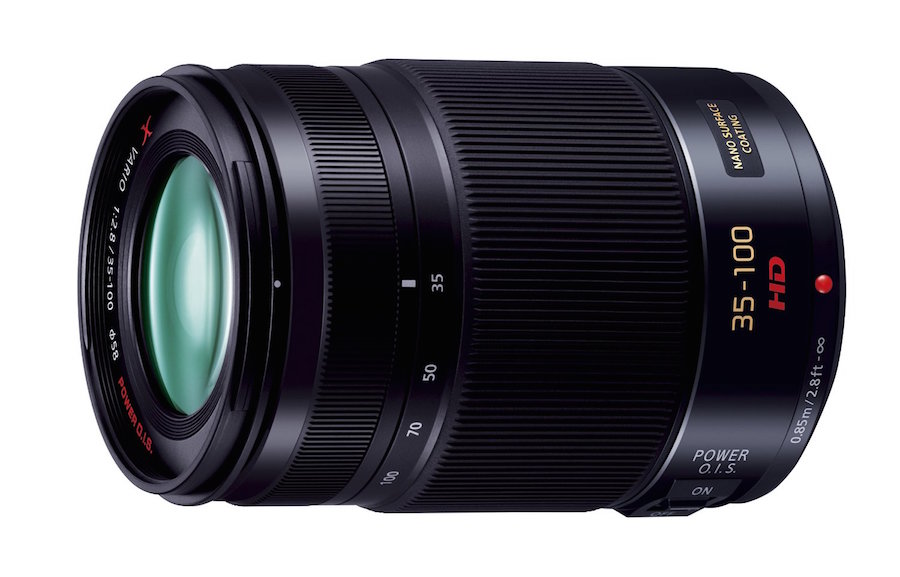 Panasonic H-HS35100 35-100mm f/2.8 lens construction includes 18 element / 13 group optical elements crafted from Ultra Extra-Low Dispersion (UED) and Extra-Low Dispersion (ED) glass, and uses Panasonic’s Nano Surface Coating to minimize internal reflections and flare.