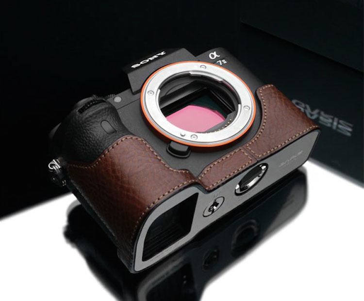 The half cases are genuine leather and available black, brown, orange and camel colors for the Sony A7II mirrorless shooter.