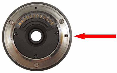 Lenses with a black dot at the bottom of the slot for the pin on the camera’s lens mount have already been inspected and/or repaired by a Nikon service center.