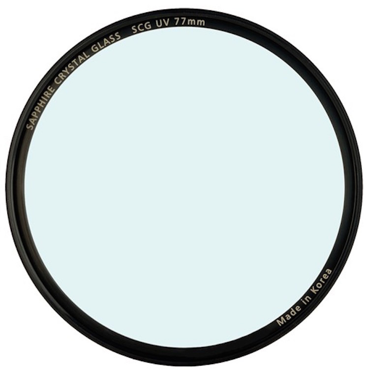 The Sapphire UV filter (pictured) boasts a 2.39mm thick brass frame with laser engraved text, and is made with Sapphire Crystal glass offering 99.9% transmittance and 99.95% UV blockage.