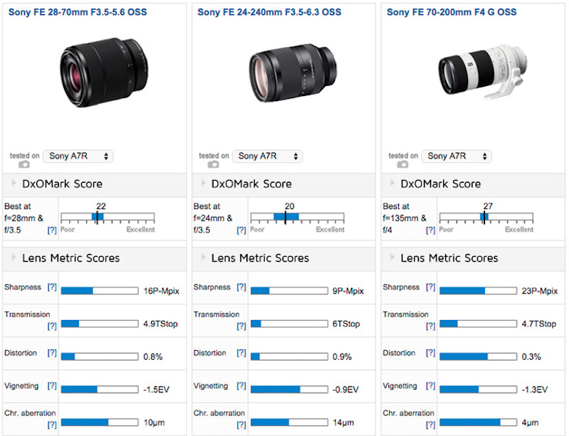 Sony FE 24-240mm f3.5-6.3 OSS vs Sony FE 28-70mm f3.5-5.6 OSS vs Sony FE 70-200mm f4 G OSS