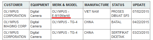 Olympus E-M10II Camera Name Officially Registered in Indonesia