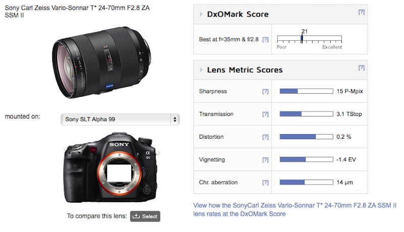Sony Zeiss Vario-Sonnar T* 24-70mm F2.8 ZA SSM II Gets DxOMarked : Excellent Performer Optically