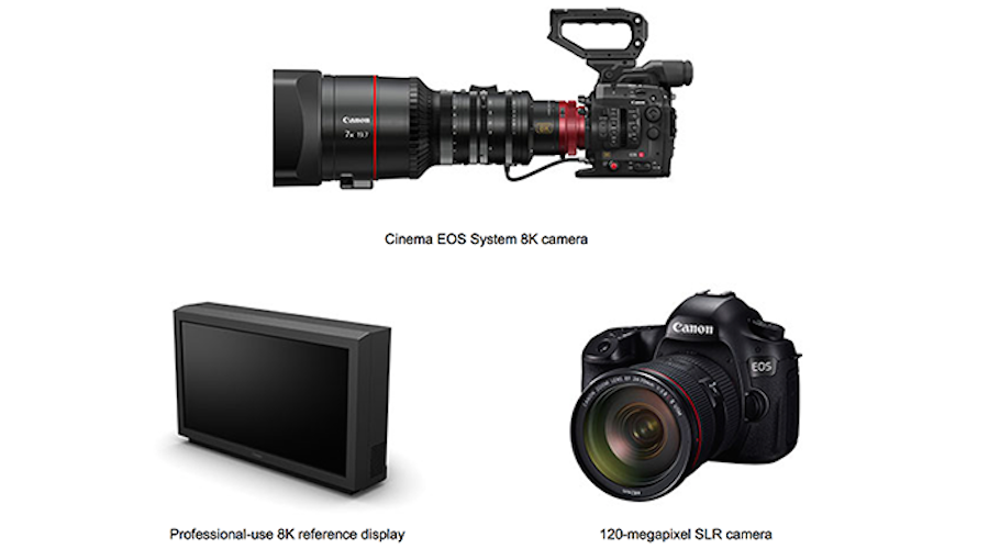 The announcement includes the development for a Cinema EOS System 8K camera, a professional-use 8K reference display, and an EOS DSLR equipped with a 120MP full-frame sensor.