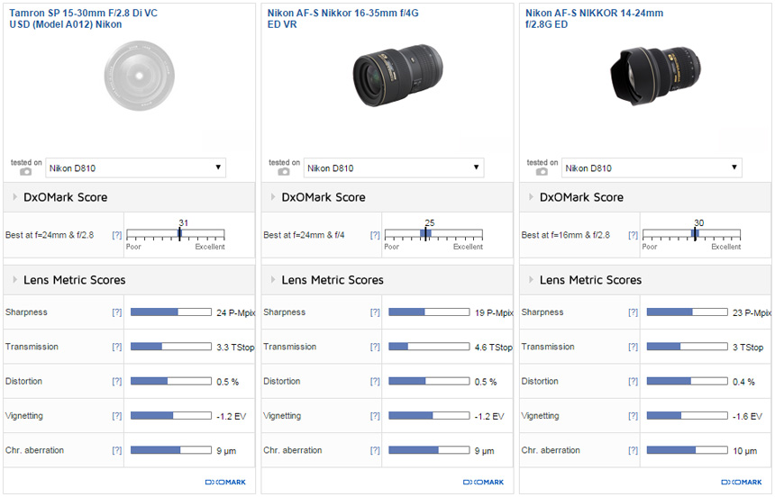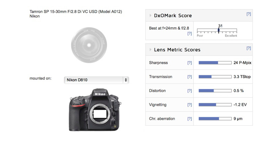 Tamron SP 15-30mm f/2.8 DI VC USD lens test results shows the lens score of 31 points and earned a high score overall. The wide-angle zoom lens tested by using the Nikon D810 digital SLR camera.