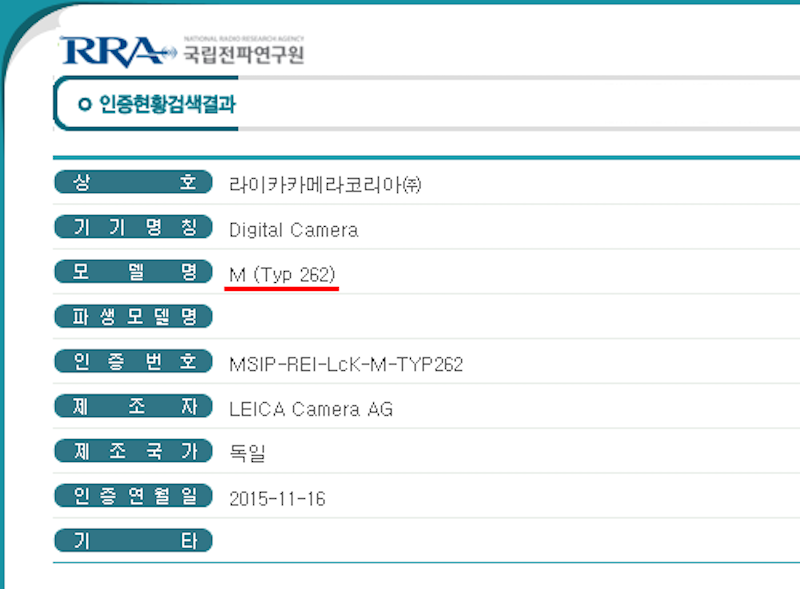 Leica has registered a new camera at Russia and South Korea. The new camera will be called as Leica M Typ 262 and to be announced soon.