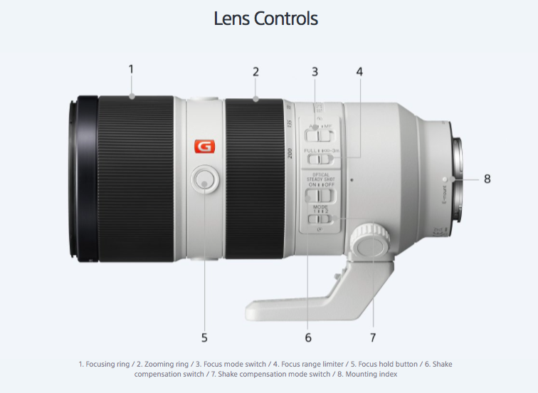 Sony FE 70-200mm f/2.8 GM OSS telephoto zoom specifications