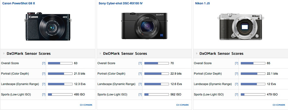 Canon PowerShot G9 X sensor review shows the camera achieved a score of 63 points. It is 8 points lower than the Powershot G7 X model.