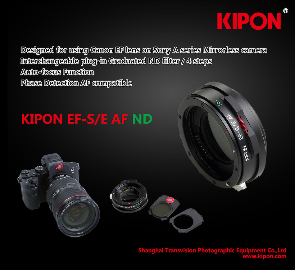 Kipon released a new Canon EF to Sony E-mount autofocus adapter with interchangeable plug-in graduated ND filters support.