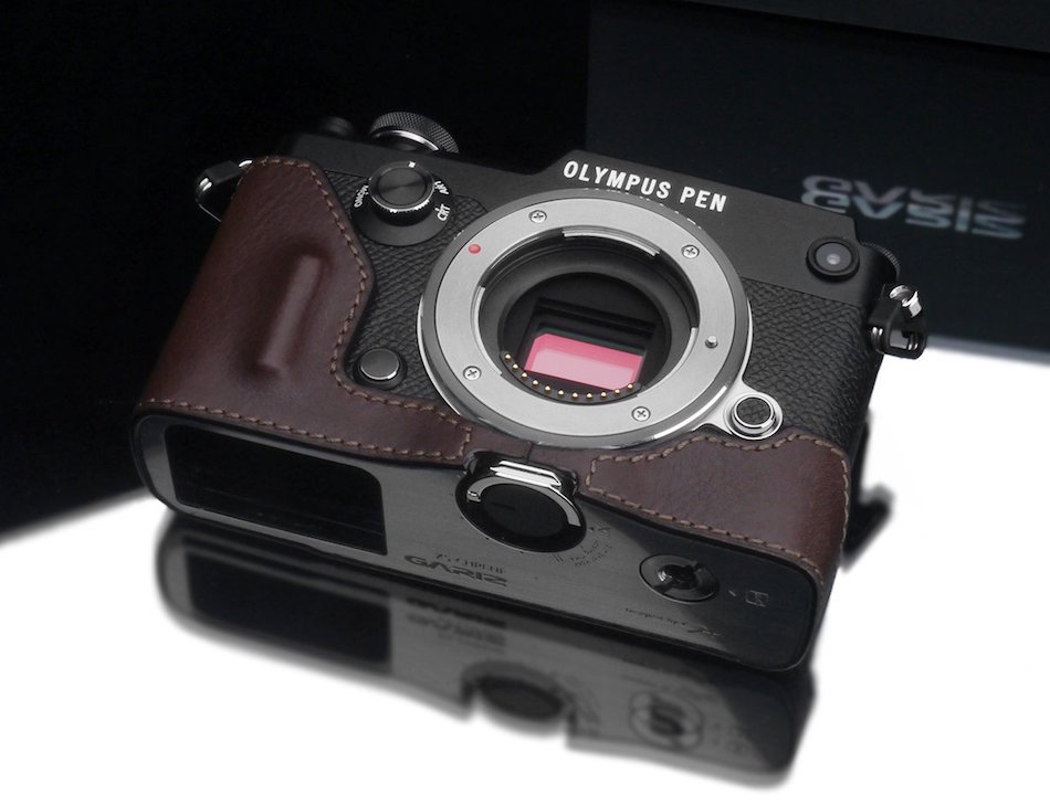 Olympus PEN-F genuine leather camera half cases from Gariz is now available from several camera stores.