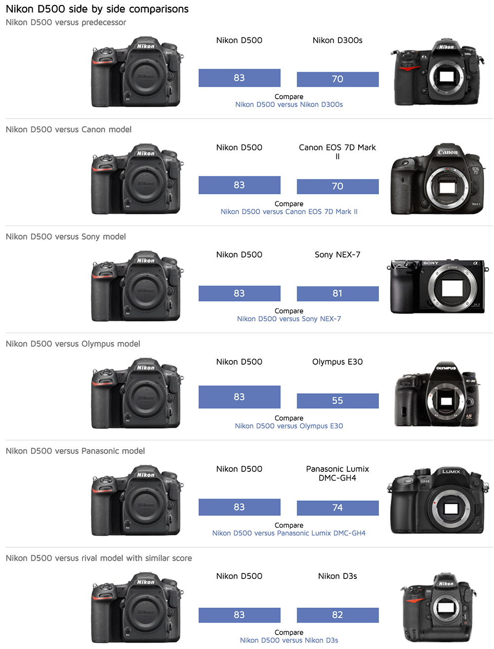 | Nikon D500 [body-only] | $1,999.95 | Amazon | B&H | Adorama |