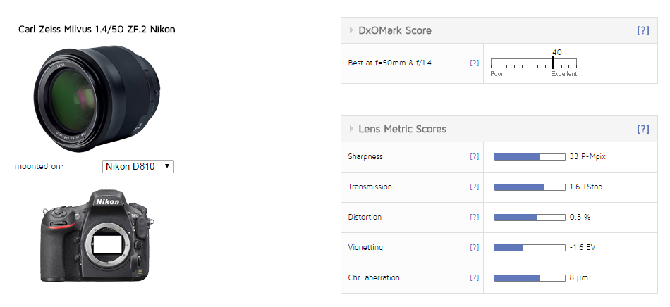 Zeiss Milvus 50mm f/1.4 test results shows the lens score of 40 points and performed an excellent optical performance. The lens tested on Nikon D810 full-frame digital SLR camera.