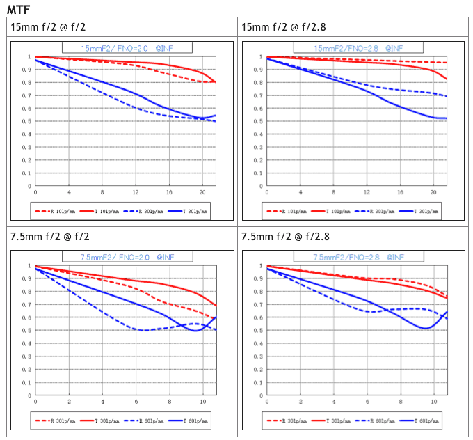 | Lens descriptions | 15mm f/2 | 7.5mm f/2 |