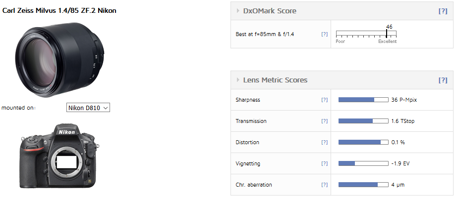Zeiss Milvus 85mm f/1.4 lens test results published by DxOMark