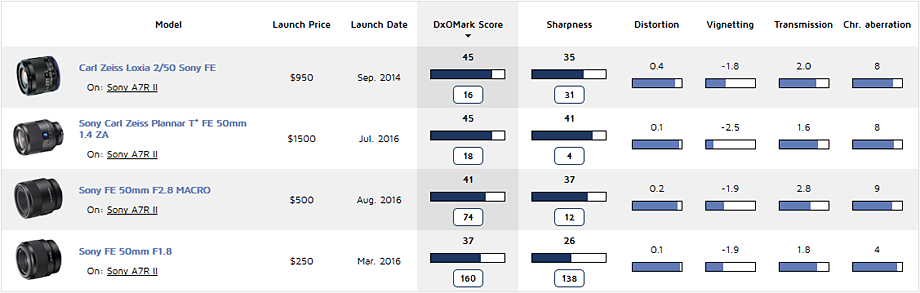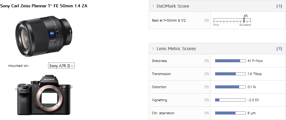 Sony FE 50mm f/1.4 ZA lens test results by DxOMArk