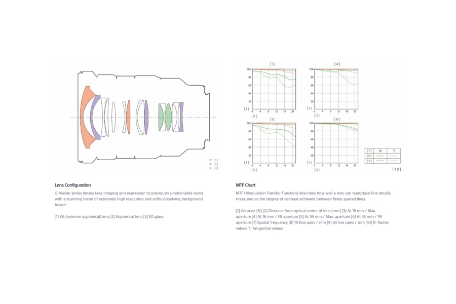 The lens features a near circular aperture shape at all settings, and the combination of the aforementioned XA element with its 11 blade aperture design produces images with sharply focused subjects and beautifully defocused backgrounds or “bokeh”. It also has two DDSSMs (Direct Drive SSM) that compose a floating focusing system and ensure that AF acquisition is speedy and quiet, making it an ideal choice for shooting still images as well as movies.