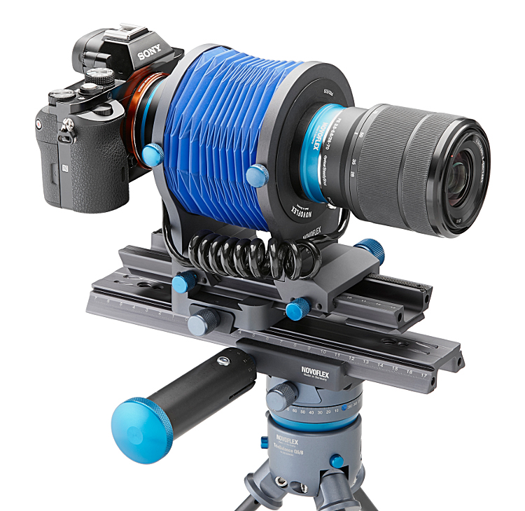 In addition to reversing the lens on the camera, NEX-RETRO allows the Sony E-Mount system user to incorporate NOVOFLEX bellows systems for even closer focus and greater magnification ratios.