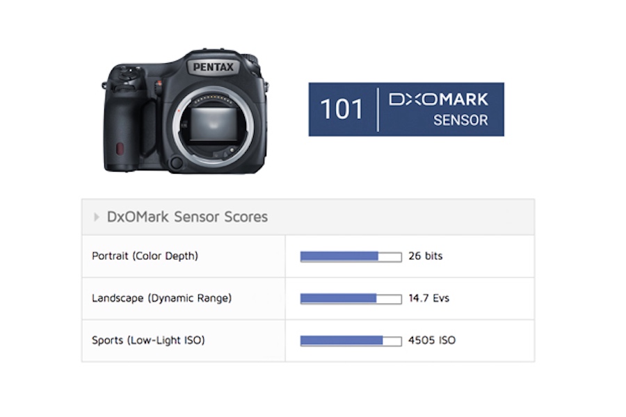 With an overall DxOMark sensor score of 101 points, the Pentax 645Z has the second-highest-scoring sensor we’ve ever tested, beaten only by the 51.4Mp Sony sensor in the Hasselblad X1D-50c.