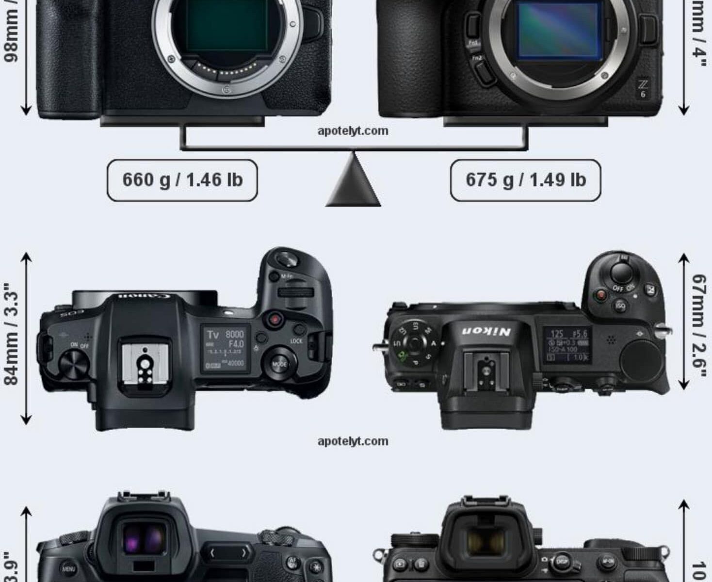 Canon EOS R vs Nikon Z6 Size Comparison