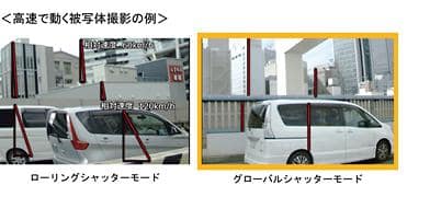 By increasing charge accumulation and readout efficiency, it is possible to mount a global shutter that simultaneously exposes all the pixels. This makes it possible to perform accurate imaging with no skew in the rolling shutter mode (a phenomenon in which skew distortion occurs in a moving object at high speed), flash band (phenomenon in which light and shade difference occurs in the upper and lower portions of the screen due to the flash being exposed) I will.