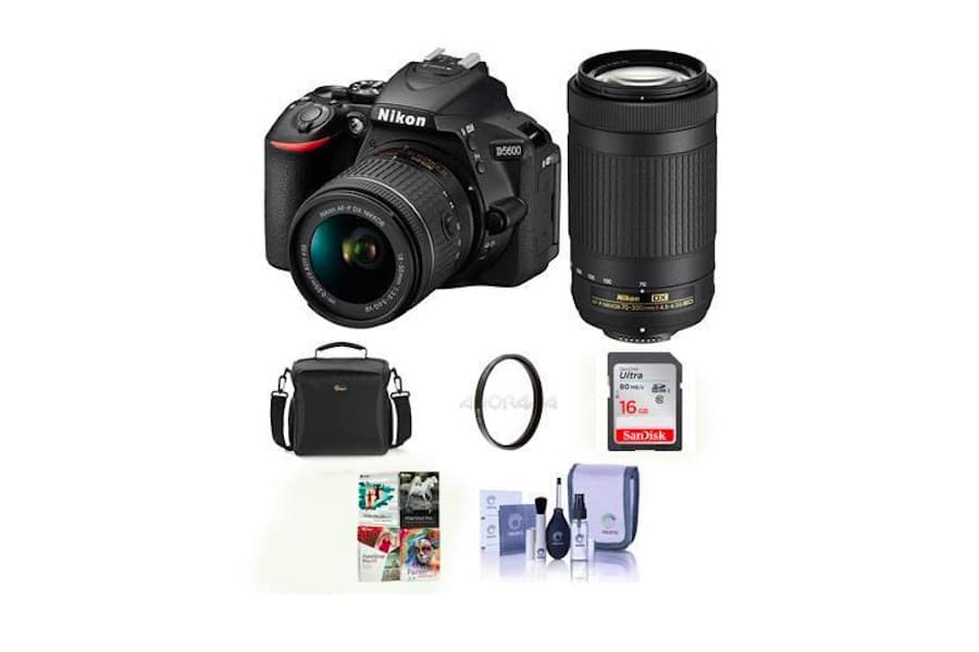 This Value Bundle comes with a Nikon D5600, SanDisk Ultra UHS-1 SD, Lowepro Format 160 Camera Bag, Black, ProOPTIC Complete Optics Care and Cleaning Kit, Corel Software Kit and a Bower HD UV Filter.