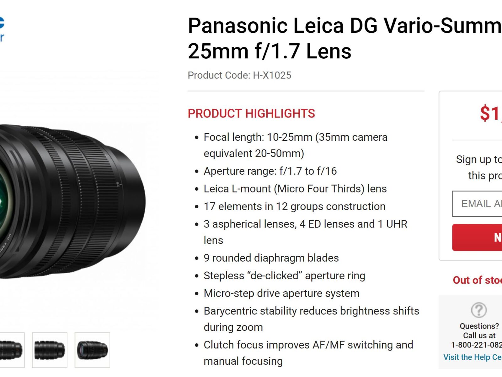 Panasonic USA authorized dealer Focus Camera has already leaked the full specs and US price of Panasonic Leica DG Vario-Summilux 10-25mm f/1.7 Lens today. The US price for this lens is $1,797.99.