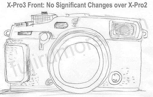 Here are some accurate sketches of the upcoming Fujifilm X-Pro3 mirrorless camera. According to the drawings, the camera have no significant change over the current Fuji X-Pro2 ($1,699 at Amazon, B&H, Adorama). The only thing we are able to spot is the new tilting screen.
