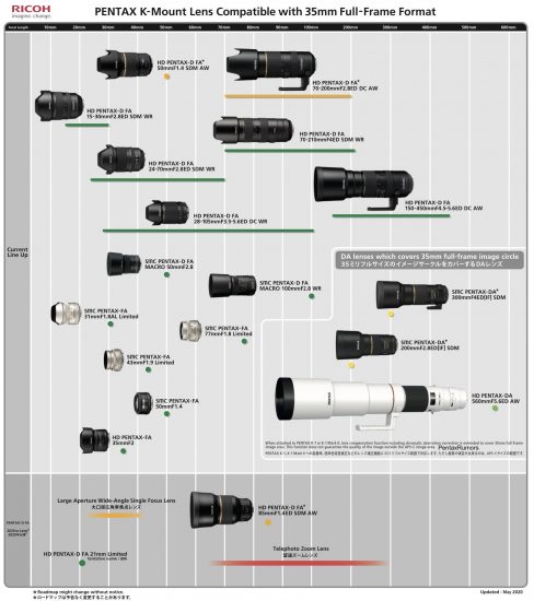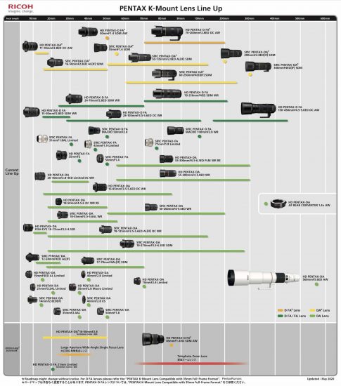 Ricoh updates Pentax Lens Roadmap 2020. Ricoh has given more details on the flagship APS-C DSLR, as well as giving an updated lens roadmap, showing two additional lenses.