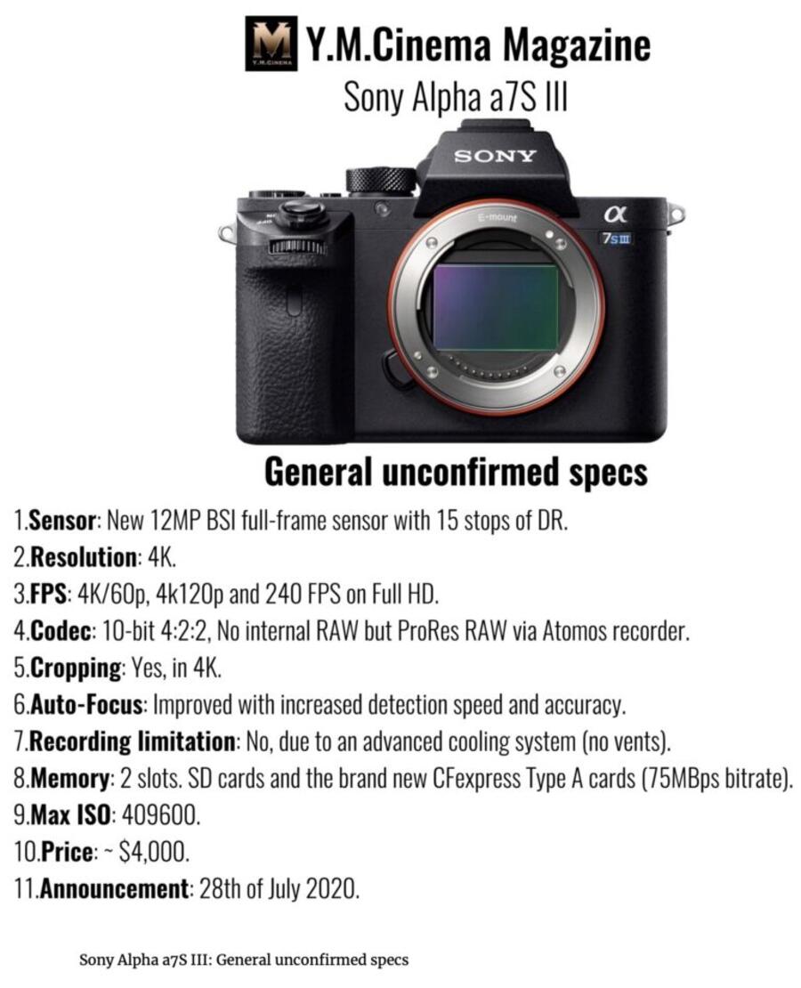Sony a7S III will be officially announced on July 28, 2020 at 10:00 EDT, and it is now listed at B&H. The preorder starts at 10am ET, Tue Jul 28.