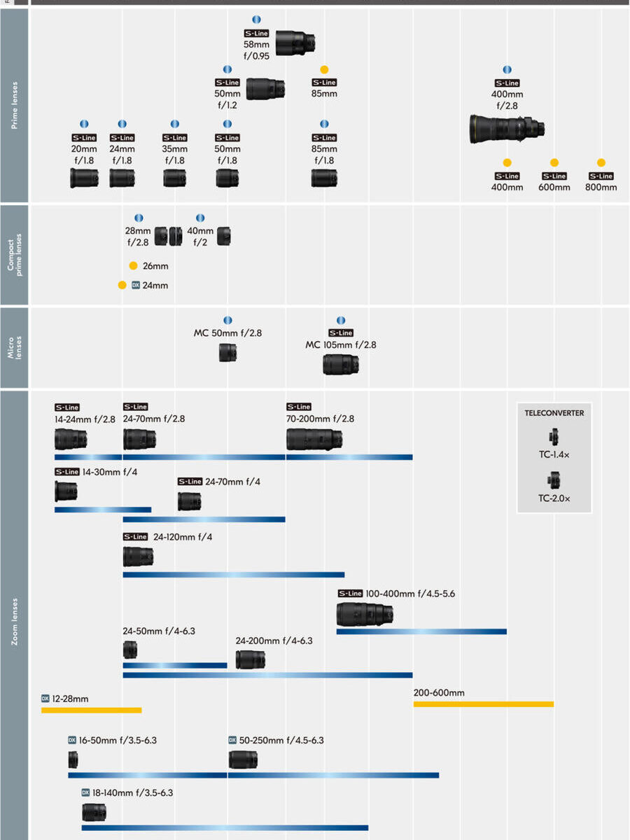 Nikon today updated the new lens roadmap for NIKKOR Z-mount mirrorless lenses until 2021. The new Nikon Z-mount lens roadmap now has several lenses, including 400mm, 600mm and 800mm telephoto prime lenses in the premium ‘S’ line.