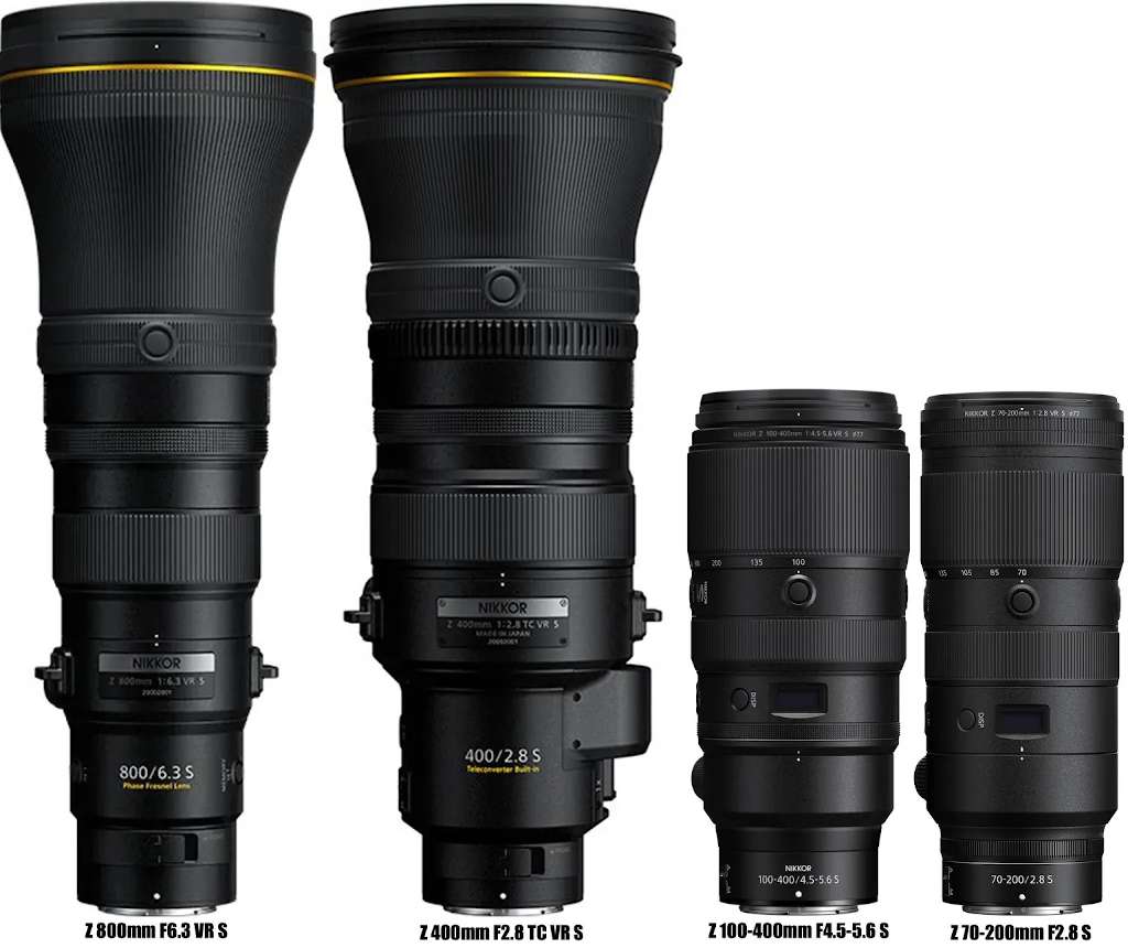 Nikon Nikkor Z 800mm f/6.3 VR PF S lens size comparisons from Asobinet: